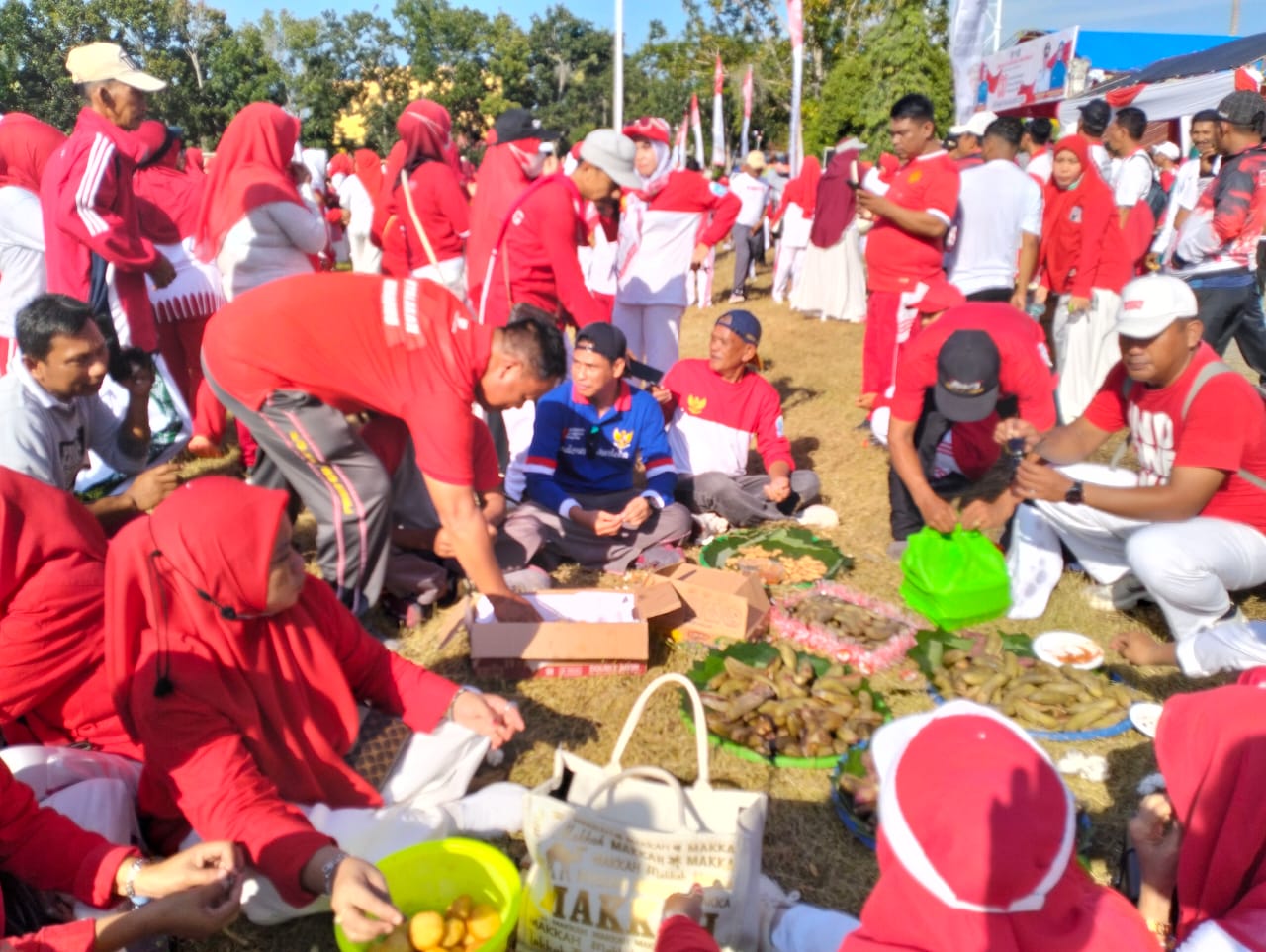 Gerak jalan santai tersebut mulai star jalan raya di Tono dan finis di lapangan sepak bola Kec.Dua Boccoe, terlaksana dengan meriah. (Haus)