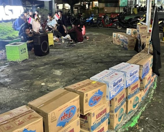 Pantauan PB.Com di lokasi menunjukkan tumpukan kardus berisi minuman kardus yang disusun rapi di trotoar jalan. Sejumlah mahasiswa tampak hadir, duduk melingkar sambil berdiskusi di sekitar posko.